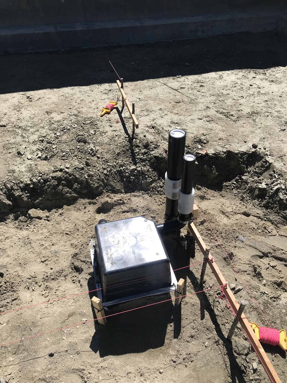 Making the electrical and water connections out at the water main line and the meter pedestal: