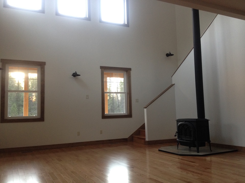 Retirement HomeWe had the privilege of being called by homeowners from Kodiak, Alaska who owned a secondary waterfront parcel here in Bonner County and were retired and wanted to build their dream home here and relocate. From an online website, they gave us a general design, and we began the design process using our software from Chief Architect. We changed the home's design to match our climate and the budget and the homeowner's interior goals. The home has some wonderful features. First, there is a traditional wood subfloor over a crawlspace, but like other homes we have done, we poured Gypcrete over the subfloor with embedded PEX pipe for the in-floor radiant heat system. Separated into multiple zones, the boiler is able to easily heat the home, the garage and provide domestic hot water. There is an attached garage, vaulted ceilings in the living room and master bedroom, and otherwise 9' ceilings throughout. The flooring is a Kahrs engineered wood floating floor over the hydronic heat. One feature of the home is a huge tiled master shower with in-floor heat, a quartz bench, 2 shelf niche, rain head and handheld, and a doorless, low-curb entry. This shower uses the Kerdi waterproofing system by Schluter Systems, which we incorporate into all of the tiled showers in our custom homes since it is a superior waterproofing method and limits the amount of mildew and mold growth common in the mortar of a traditional tiled shower pan. The kitchen has beautiful cherry cabinets, oak wood flooring, granite countertops and a marble backsplash. With spray foam, blown cellulose, and attention to details, this home is incredibly energy efficient.